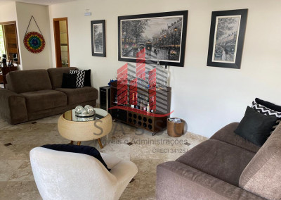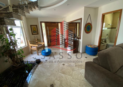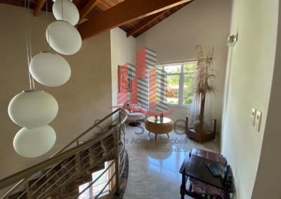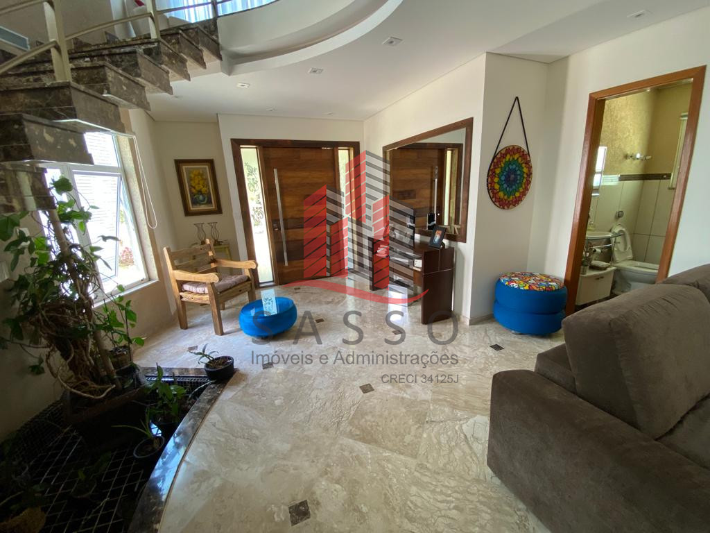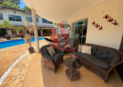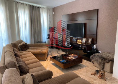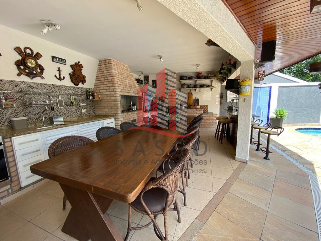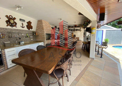 São 450 metros quadrados de area construída, em um terreno de 850 metros, com 4 suítes, 6 banheiros, cozinha, sala com 2 ambientes, área de serviço e 4 vagas de garagem.