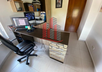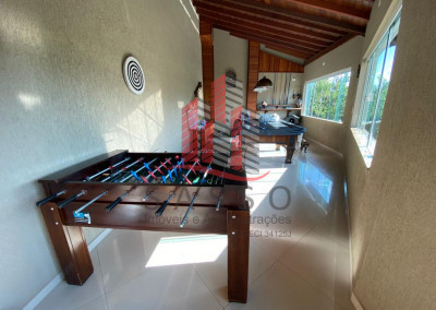 Repleto de armários planejados em todos os ambientes, box de vidro nos banheiros, piso porcelanato nas áreas frias, box de vidro nos banheiros, hidromassagem na suíte master, paredes decoradas, acabamento sanca em gesso, câmeras em alguns ambientes. Possuí ar condicionado nos dormitórios e escritório, aquecimento solar e lareira.
