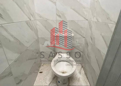 Salão todo em piso frio, banheiro para empregados, lavabo, porta com duas entradas, quintal e copa.