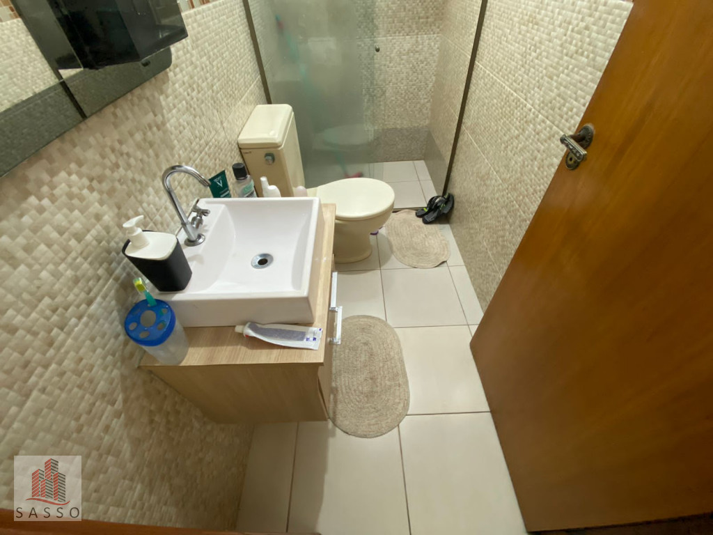São 83 metros quadrados com 2 dormitórios sendo 1 suíte, sala com 2 ambientes, cozinha, área de serviço, banheiro social e 1 vaga de garagem.