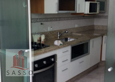 apartamento com sacada, piso em porcelanato, sala com acabamento em gesso e cozinha planejada equipada.