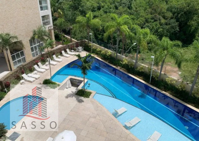 São 158 metros quadrados com 3 quartos todos sendo suítes, sala para 2 ambientes, cozinha, área de serviço, banheiro social e 2 vagas de garagem.