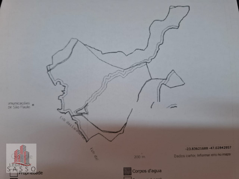 Faz. divisa com os municípios de Ibiúna- SP e São Lourenço da Serra- SP. Com 20 nascentes, 2 rios, 3 estradas cortam a propriedade. Mata Virgem, vegetação nativa.