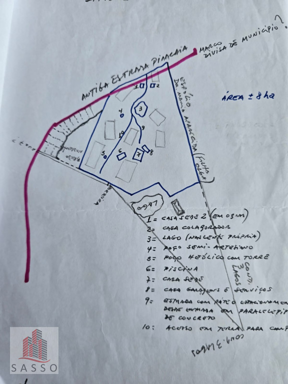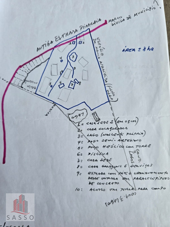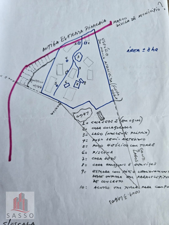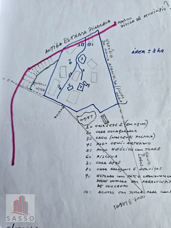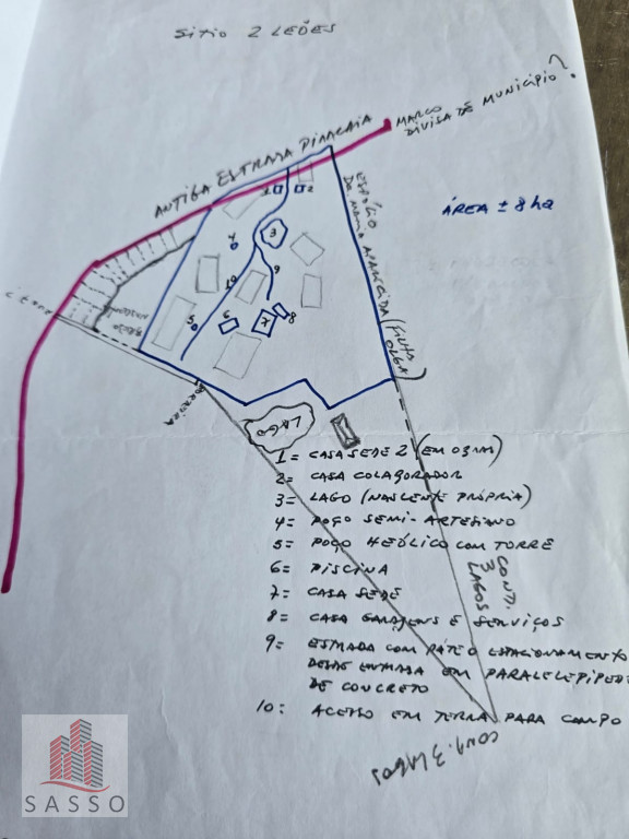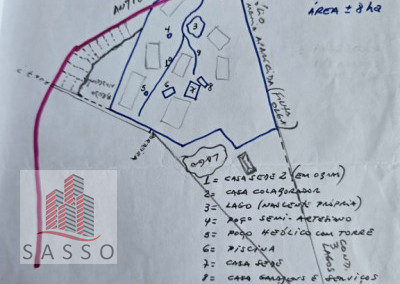 Sitio em área rural, são 25,95 alqueires, entrada de concreto, casa principal e mais 7 casas, lago com nascente, piscina, casa de caseiro, excelente para hotéis.
