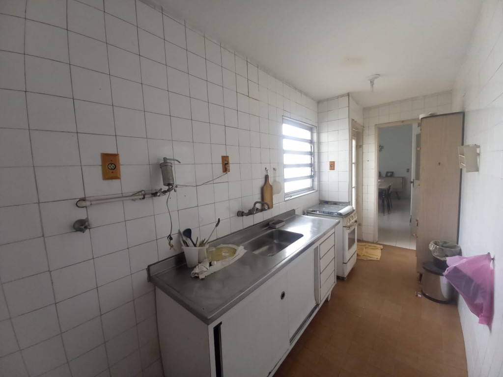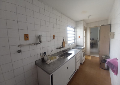São 140 metros quadrados com 2 quartos, sala para 2 ambientes, cozinha, área de serviço, banheiro social e garagem com 1 vaga.