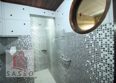 São 175 metros quadrados de área construída, com 5 quartos sendo 3 suítes, sala para 2 ambientes, cozinha, área de serviço, banheiro social e garagem com 3 vagas.