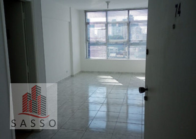 São 30 metros quadrados com 1 sala e 1 banheiro