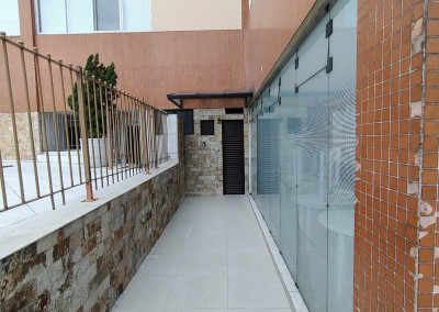 São 80 metros quadrados com 2 quartos, sala com 2 ambientes, cozinha, área de serviço, e 1 vaga de garagem.
