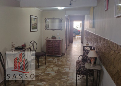 São 390m² de área construída, com 2 quartos, 3 banheiros, área de serviço, varanda, cozinha, sala para 2 ambientes e 3 vagas de garagem