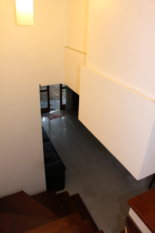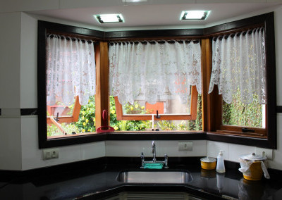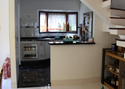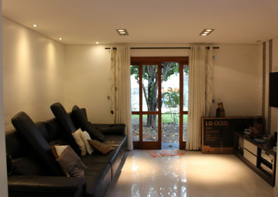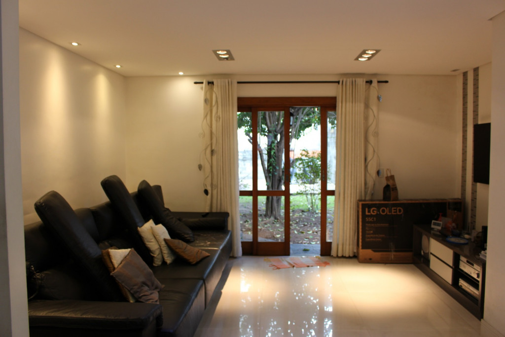 São 200 metros quadrados construídos, com 8,5 metros de frente, e 32 metros de fundos.