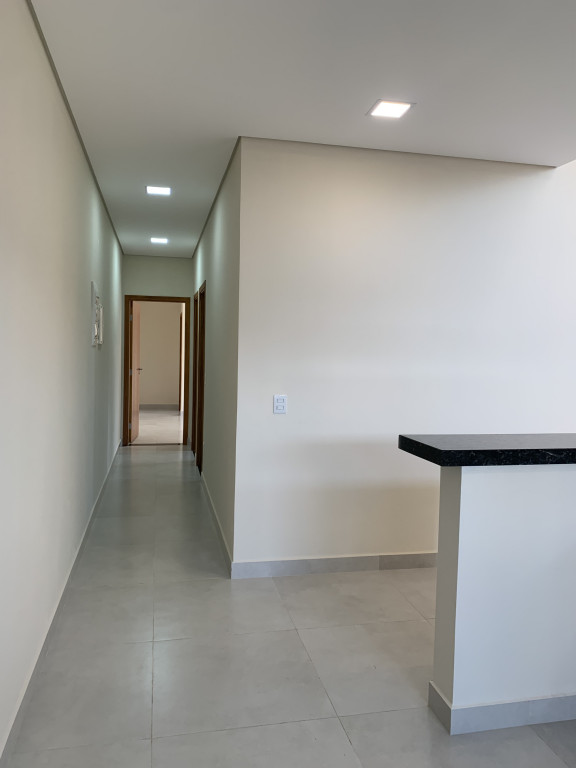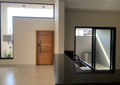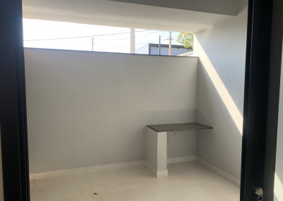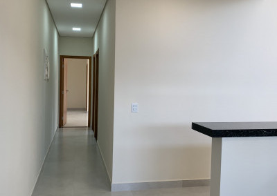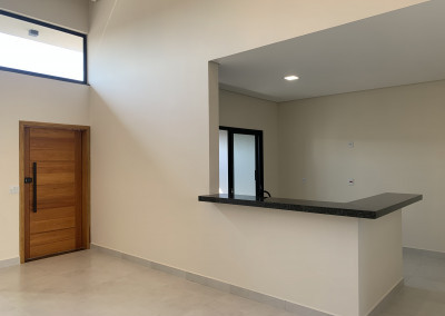 Área construída de 91 metros quadrados, com 2 quartos, 1 suíte, 2 banheiros, sala de jantar e estar integradas, 2 vagas de garagem.
