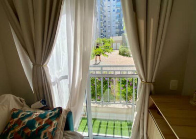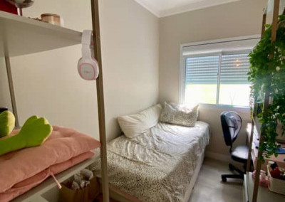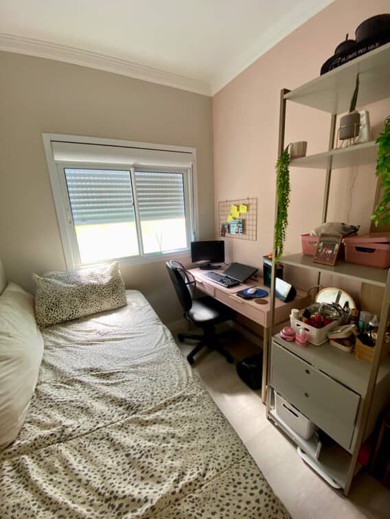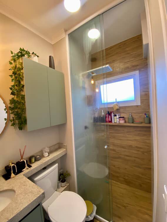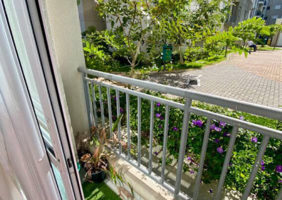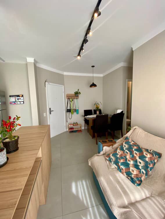 São 44 metros quadrados, com 2 dormitórios, banheiro, cozinha, lavanderia, sala integrada e sacada.