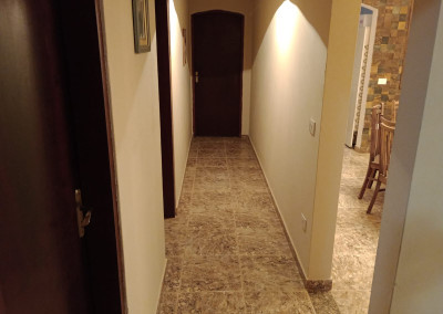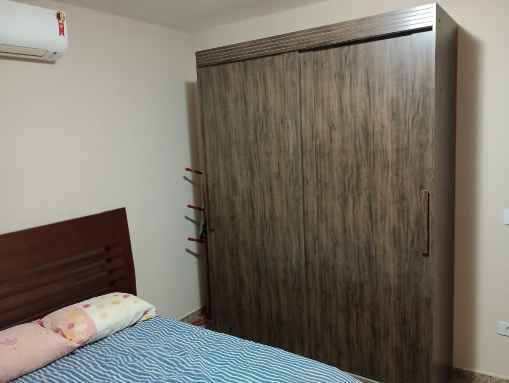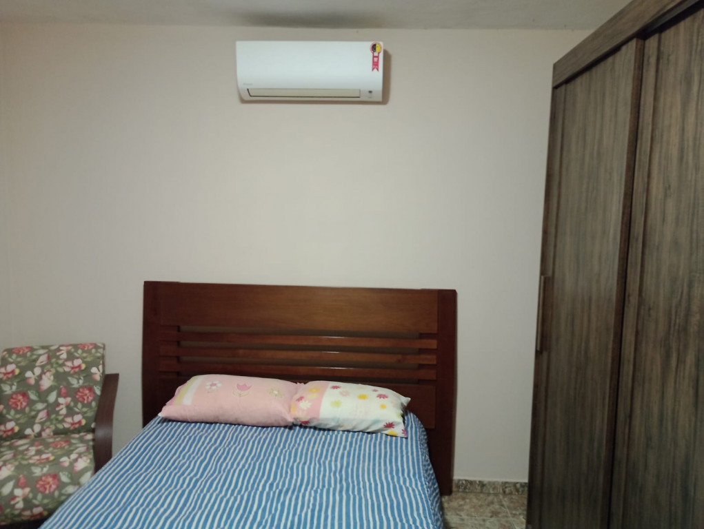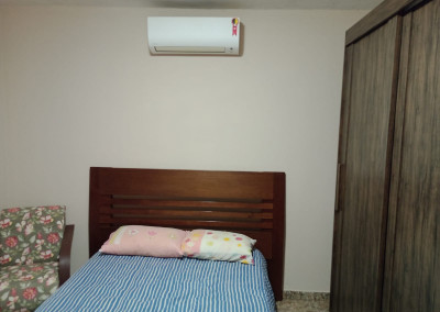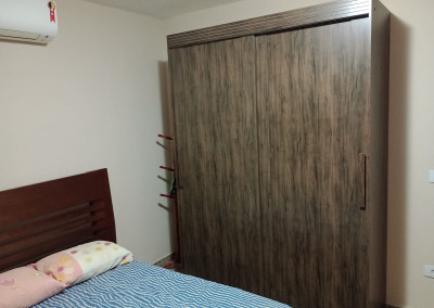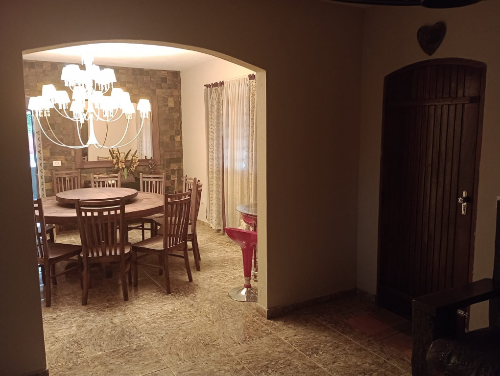 São 3 quartos 1 deles com ar condicionado, 2 banheiros, sala integrada, cozinha com bancada espaçosa, varanda, e vaga para 5 carros.