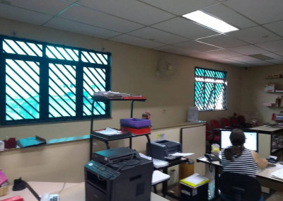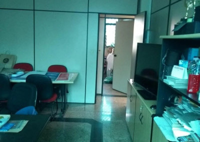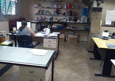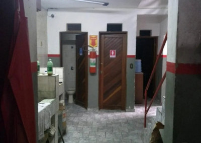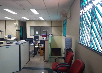 São 480 metros quadrados sendo 15 de frente, e 30 de fundos, com 6 salas, 2 cozinhas, refeitório, 9 banheiros, vestiario e 10 vagas.