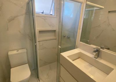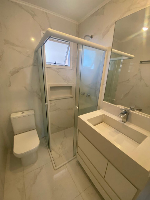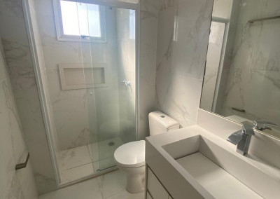 São 98 m2, com 3 quartos sendo 1 suíte, banheiro, sala estendida, lavabo, despensa, área de serviço, piso em porcelanato, pias esculpidas,