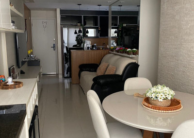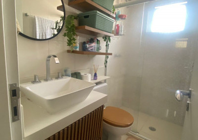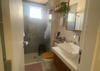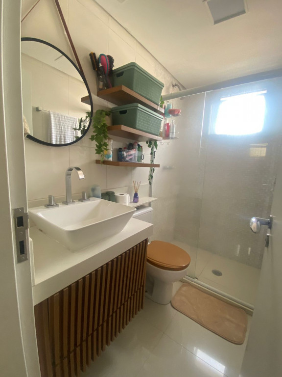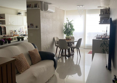 São 63m² com 2 dormitórios sendo 1 suíte, 2 banheiros, sala para 2 ambientes e 1 vaga de garagem.