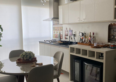 Varanda envidraçada com churrasqueira elétrica, sala nivelada com a varanda e com ar condicionado, cozinha repleta de planejados com cooktop e coifa, 2 dormitórios com planejados sendo 1 suíte com ar condicionado, lavadneria com armário e aquecedor, 1 vaga de garagem com depósito * Apartamento todo em piso porcelanato *