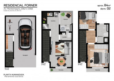 Sobrado em condominio fechado com 12 unidades: São 84m² com 2 quartos sendo 1 suíte, 2 banheiros, sala para dois ambientes, cozinha, lavanderia, quintal e 1 vaga de garagem. (casa com dois andares)