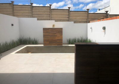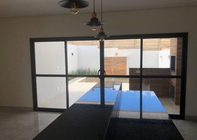 São 175 metros quadrados, com 167 metros quadrados de área construída, sendo 7 metros de frente por 25 de fundos, com 3 quartos sendo uma Suíte, 3 banheiro, sala integrada, piso em porcelanato, box de vidro no banheiro, varanda, lavanderia, área gourmet, piscina, quintal, e 3 vagas de garagem.