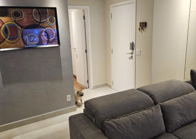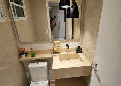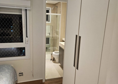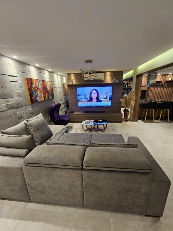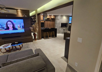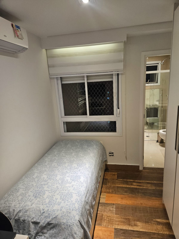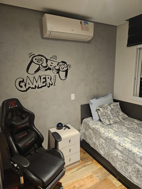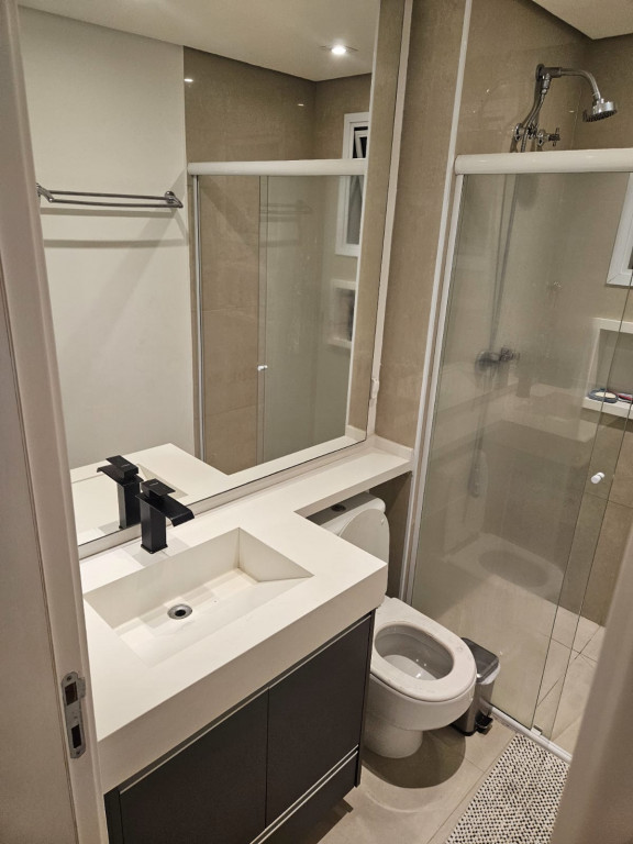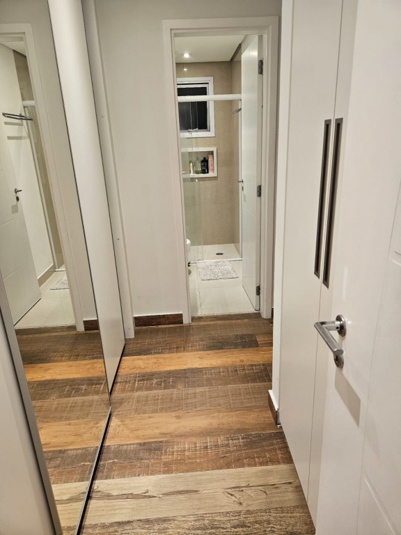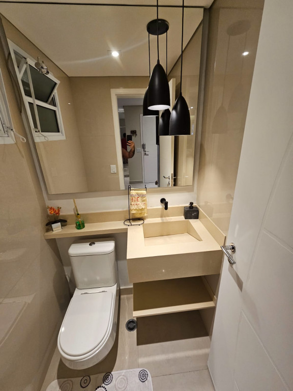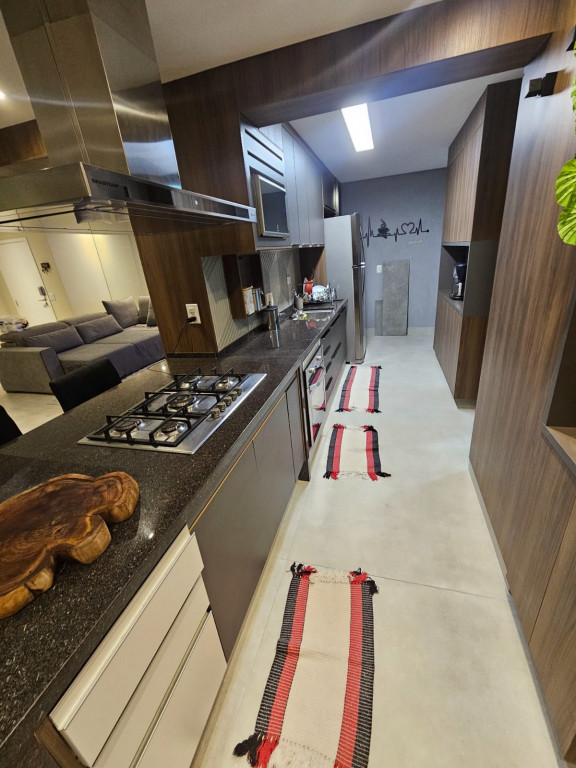 Apartamento com ar-condicionado em todos os cômodos, sacada envidraçada e nivelada, acabamento em gesso, luminárias embutidas, banheiro com box de vidro, cozinha estilo americana, com coocktop e coifa, banheiros reformados, aquecimento a gás, suítes com armários planejados, vagas grandes e separadas.
