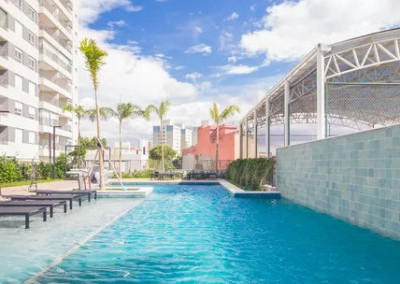 Estrutura de lazer completa : 2 piscinas, salão de festas, churrasqueira, academia, segurança 24h, quadra poliesportiva entre outros.