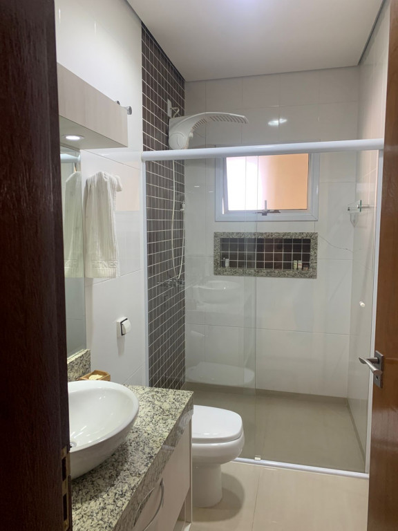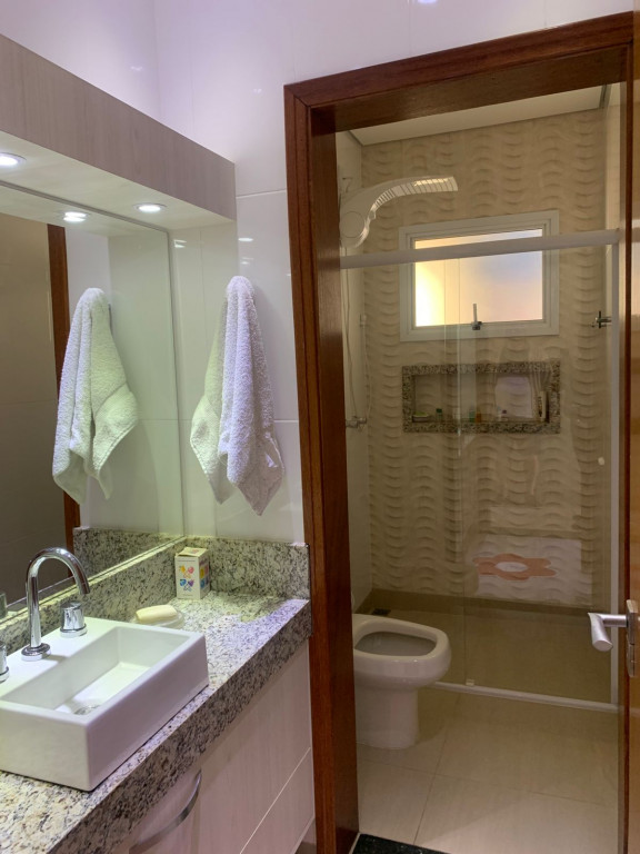São 233 metros quadrados de terreno, com 270metros quadrados de área construída, são 4 quartos sendo 2 suítes, 5 banheiros, sala para 2 ambientes, 4 vagas de garagem, quintal privativo com árvores frutíferas, Banheiro com hidromassagem, armários planejados em toda casa, piso em porcelanato, ar condicionado, lazer privativo com SPA coberto, espaço gourmet com churrasqueira, condominio com toda infraestrutura.