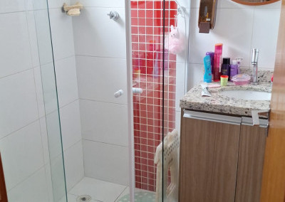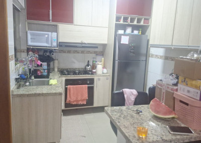 São 55 metros quadrados, 2 quartos, 3 banheiros, 2 vaga de garagem, sala com ambiente integrado, cozinha, lavanderia.
