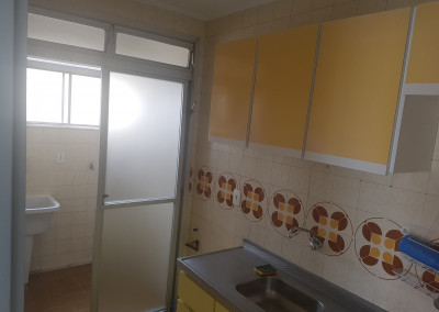 São 40 metros quadrados, com 1 quarto, sala, banheiro, cozinha, sacada, e área de serviço, piso frio, dormitório com armários embutidos, banheiro com box de vidro, cozinha com armários planejados, chuveiro a gás, pia com gabinete.