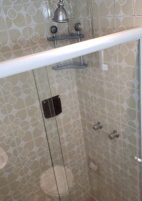 apartamento equipado com fogão, maquina de lavar, geladeira, box de vidro nos banheiros, e armários planejados.