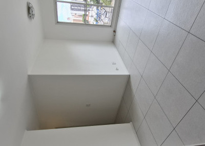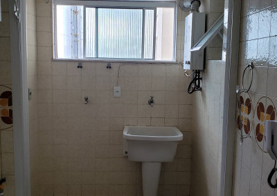 São 50 metros quadrados, com 2 quarto, sala, 2 banheiros, cozinha, sacada, e área de serviço, piso frio, dormitório com armários embutidos, banheiro com box de vidro, cozinha com armários planejados, chuveiro a gás, pia com gabinete.
