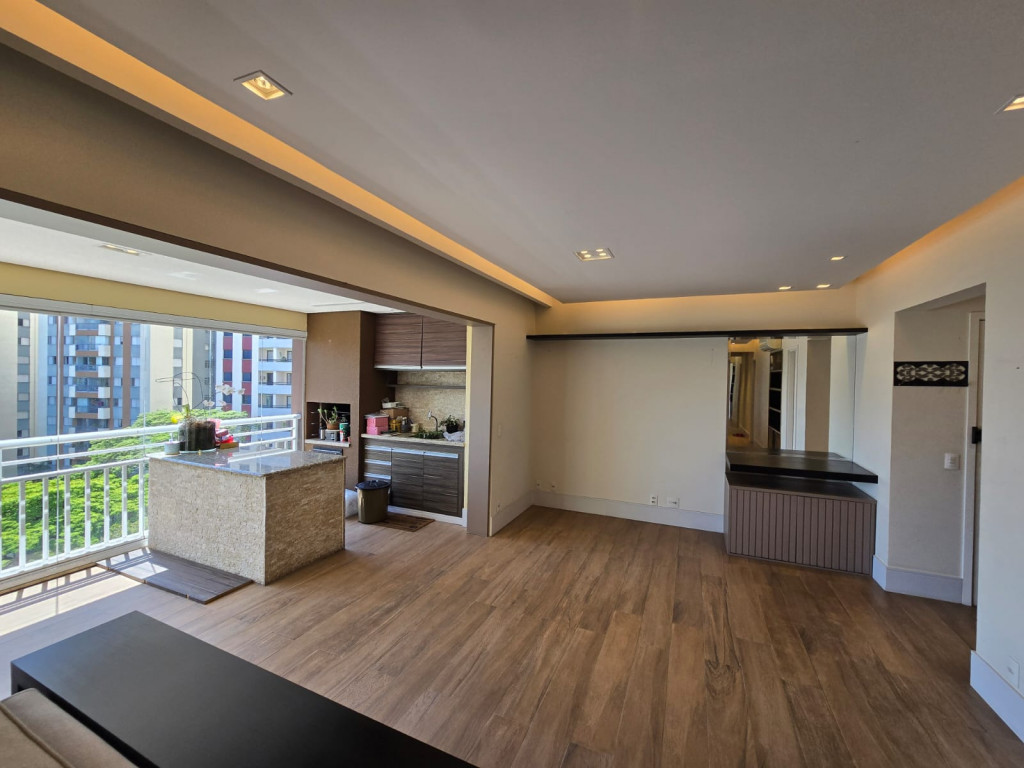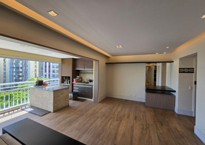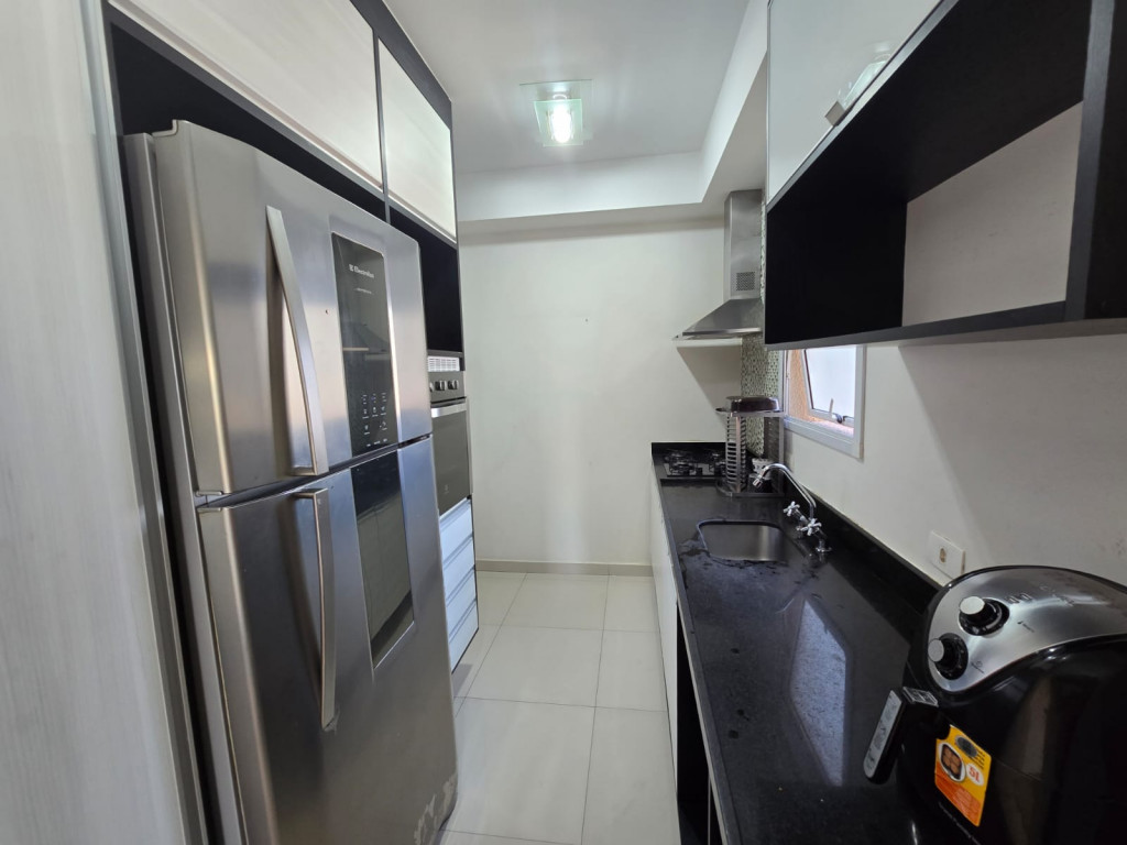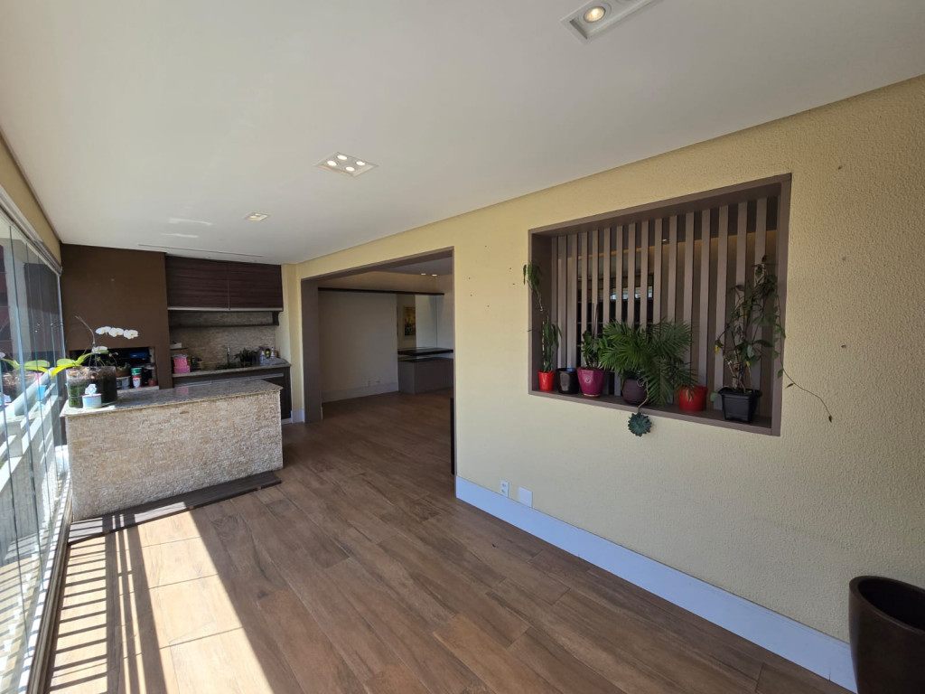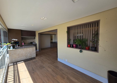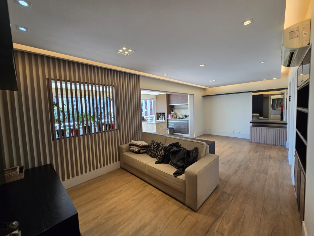 São 102 metros quadrados sala ampliada com ar condicionado rack, painel e armário, e piso de madeira, Varanda envidraçada , integrada com a sala, com churrasqueira a carvão e pia, cozinha com planejados cooktop, coifa e forno, 2 suítes com planejados sendo 1 com ar condicinado (3º dromitórios reversível), 2 banaheiros sendo suítes + 1 lavabo, lavanderia com armários e aquecedor, 2 vagas de garagem cobertas.