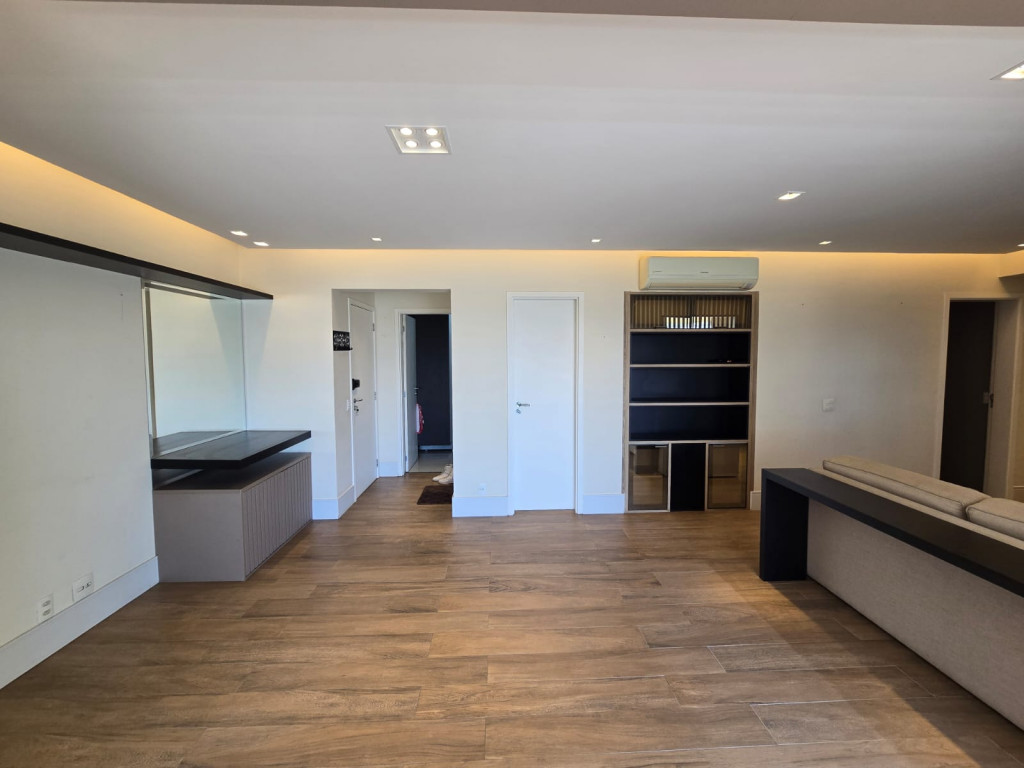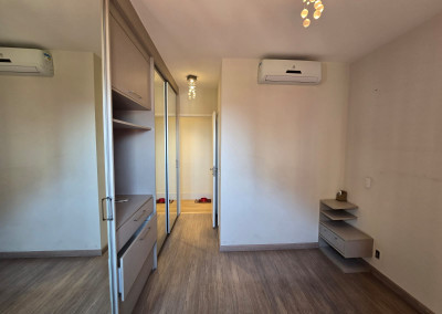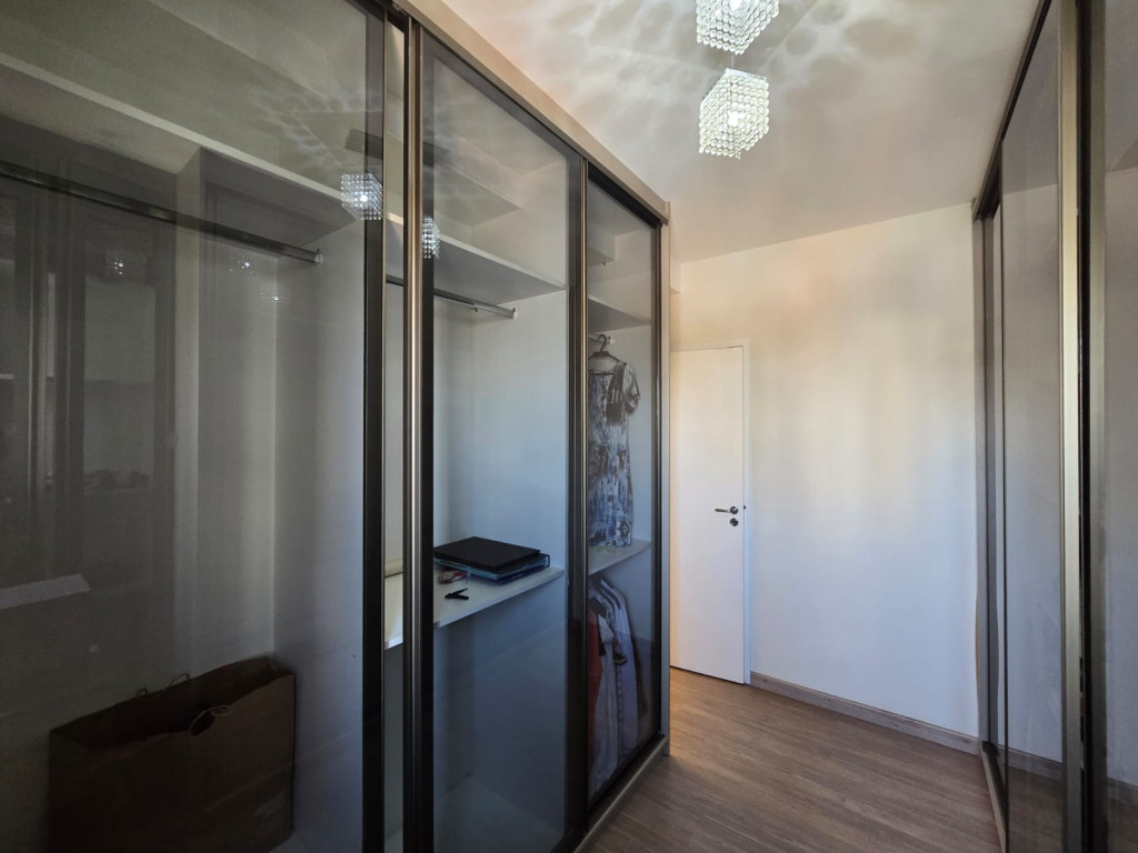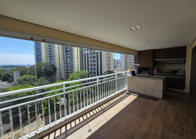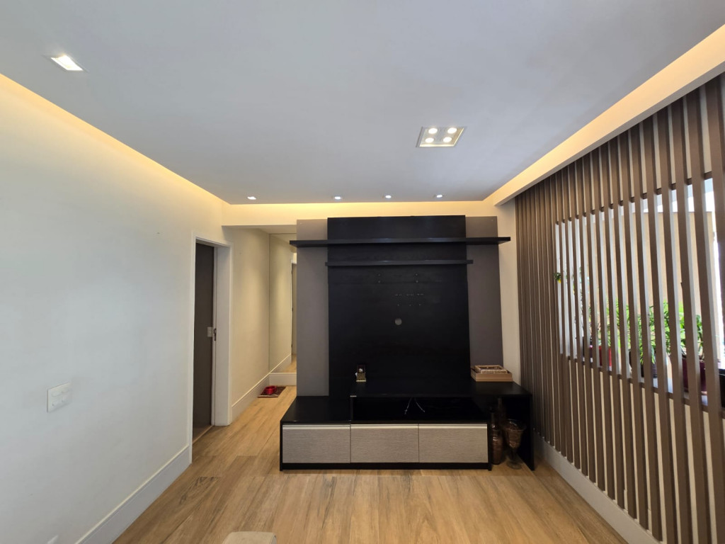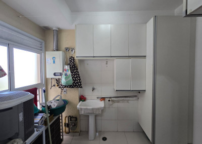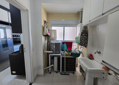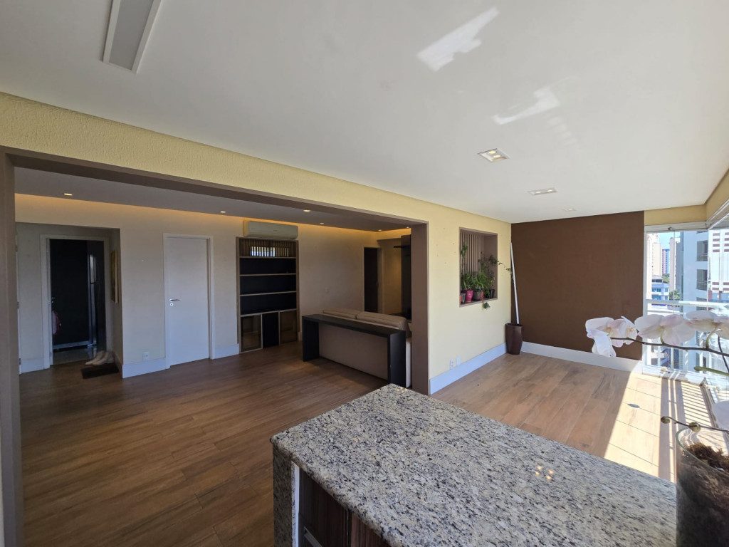 São 102 metros quadrados sala ampliada com ar condicionado rack, painel e armário, e piso de madeira, Varanda envidraçada , integrada com a sala, com churrasqueira a carvão e pia, cozinha com planejados cooktop, coifa e forno, 2 suítes com planejados sendo 1 com ar condicinado (3º dromitórios reversível), 2 banaheiros sendo suítes + 1 lavabo, lavanderia com armários e aquecedor, 2 vagas de garagem cobertas.