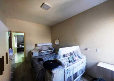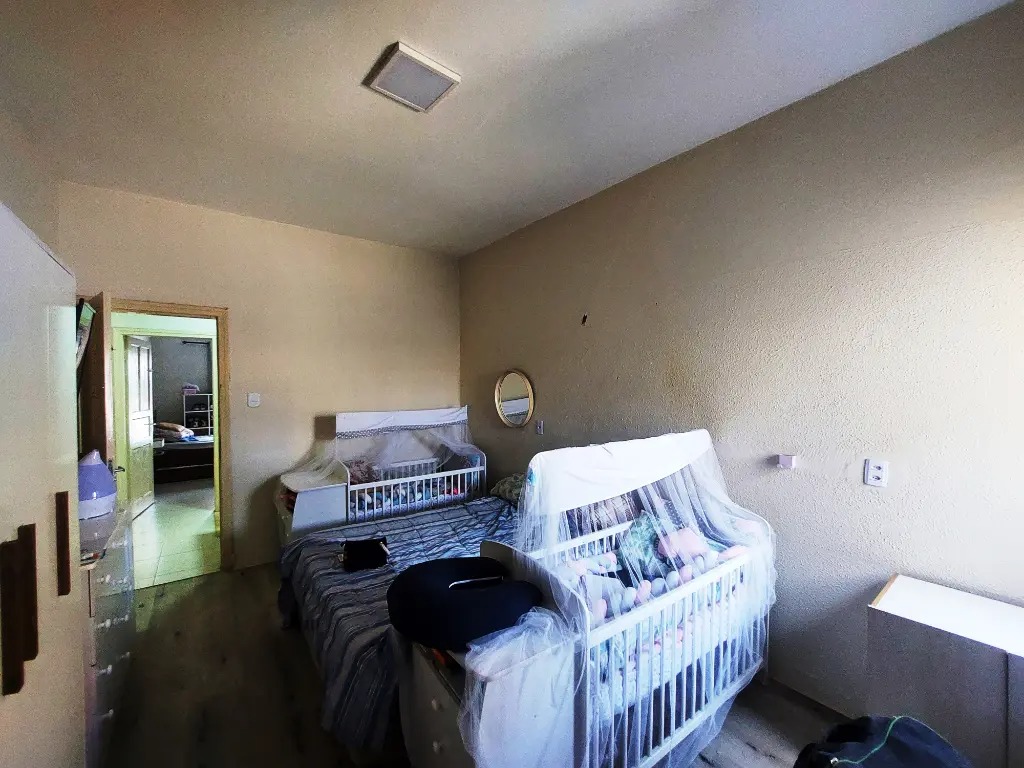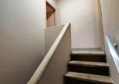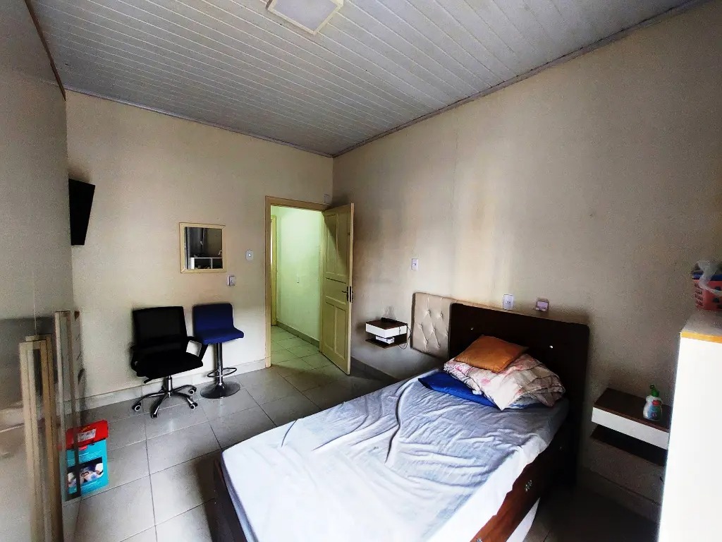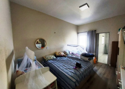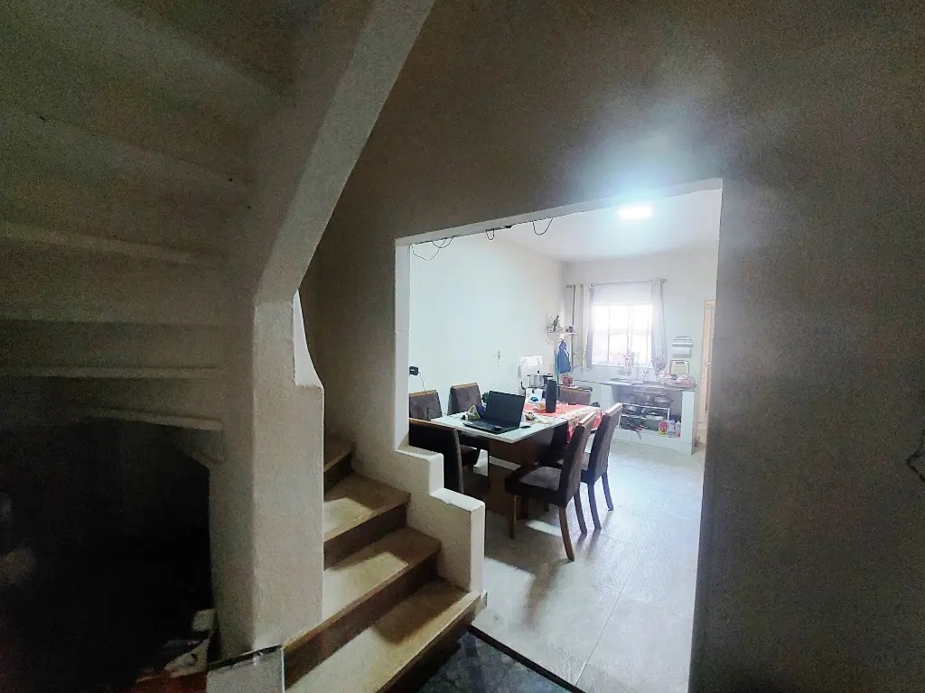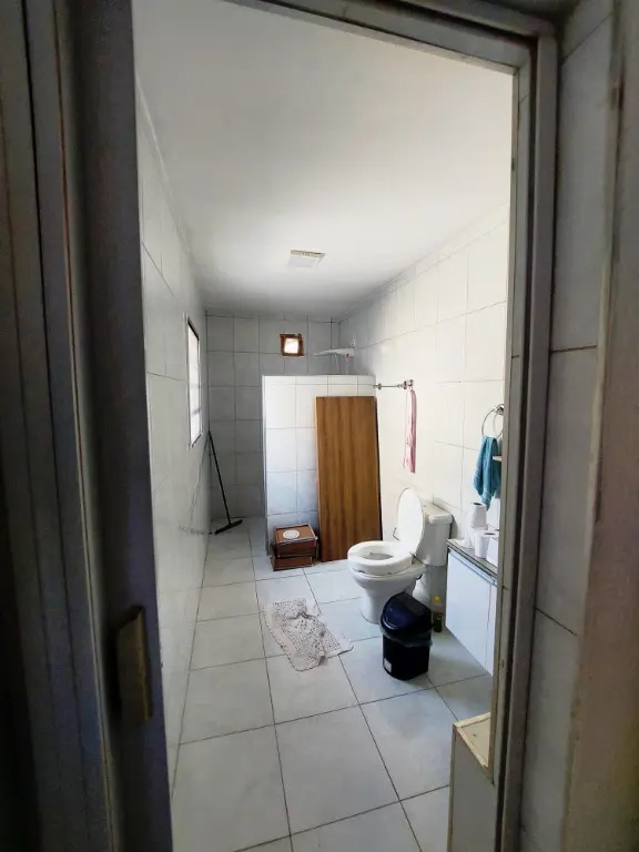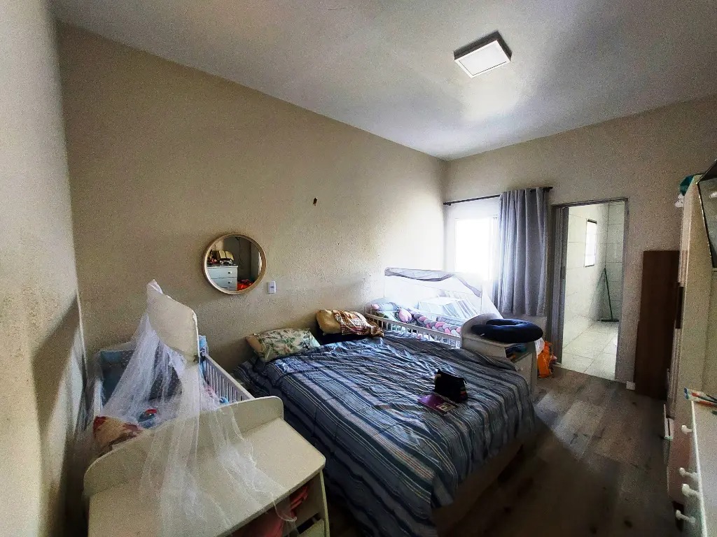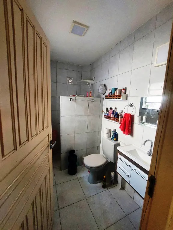 São 100 metros quadrados de área construída, com 4 metros de frente, e19 metros de fundos, com 2 dormitórios, 2 banheiros, sala para dois ambientes, varanda, quintal, cozinha e área de serviço.