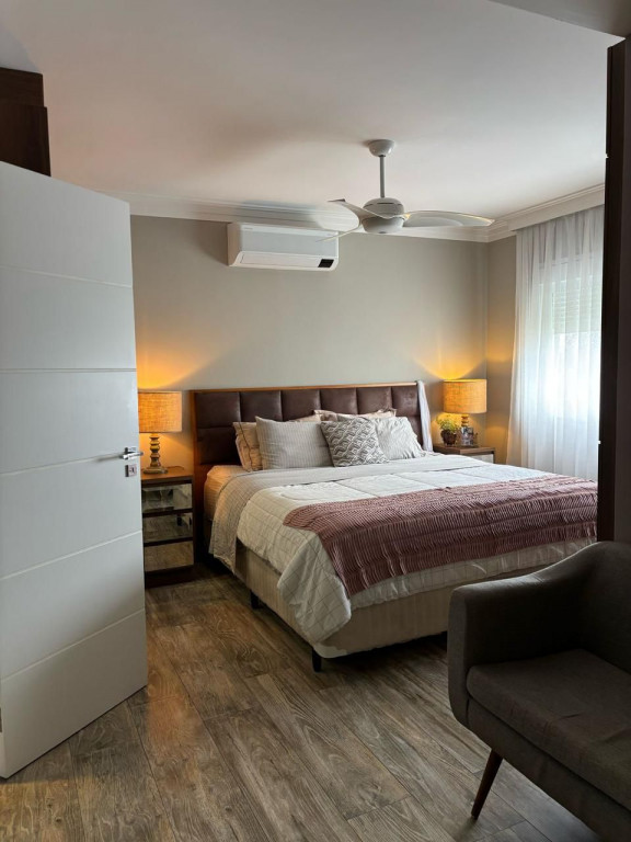 Apartamento com 4 quartos, todos suítes amplas, sala para 2 ambientes com excelente iluminação natural, cozinha planejada com armários de alto padrão, 5 banheiros no total (suítes, lavabo e serviço), varanda gourmet envidraçada, com persianas e integração total à área social, 3 vagas de garagem fixas e cobertas, apartamento todo mobiliado, pronto para morar, fino acabamento: pisos e bancadas em granito e mármore, móveis planejados, iluminação embutida e projeto moderno