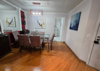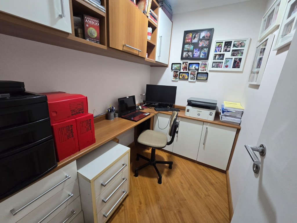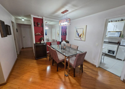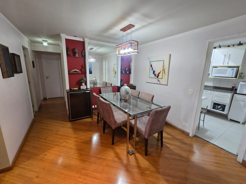São 96 metros quadrados com 3 quartos sendo uma suíte, 3 banheiros, sala com 2 ambientes, cozinha, área de serviço e 2 vagas de garagem.