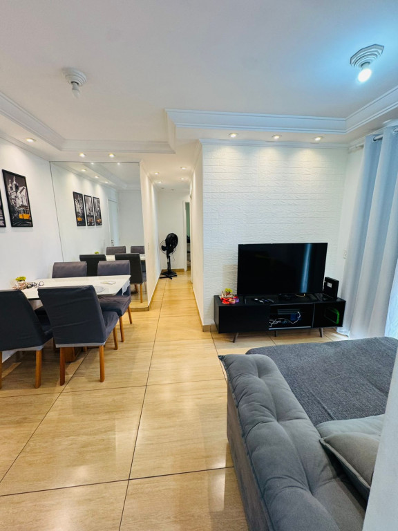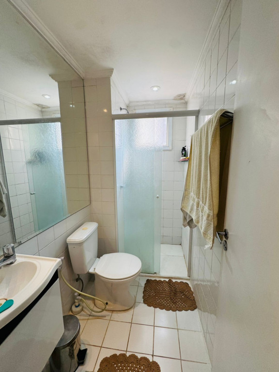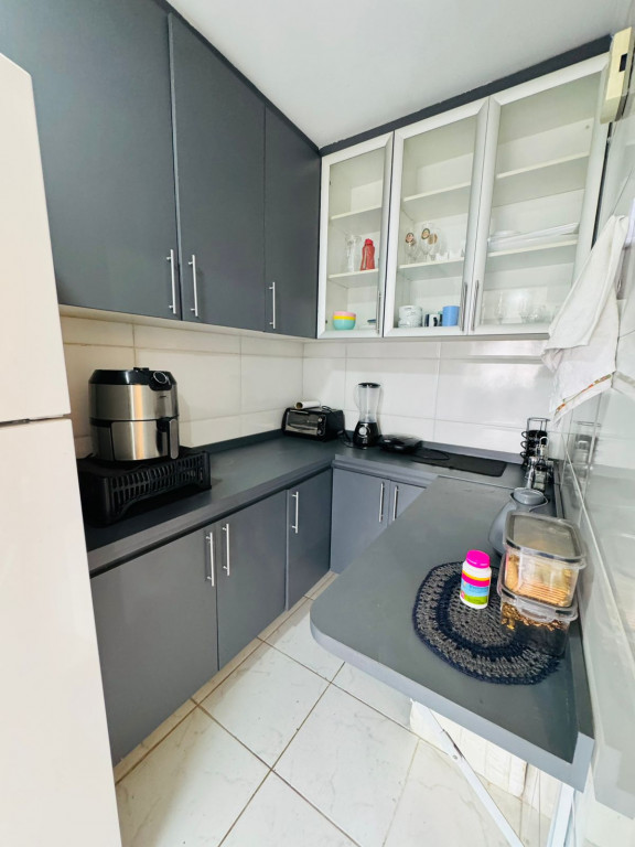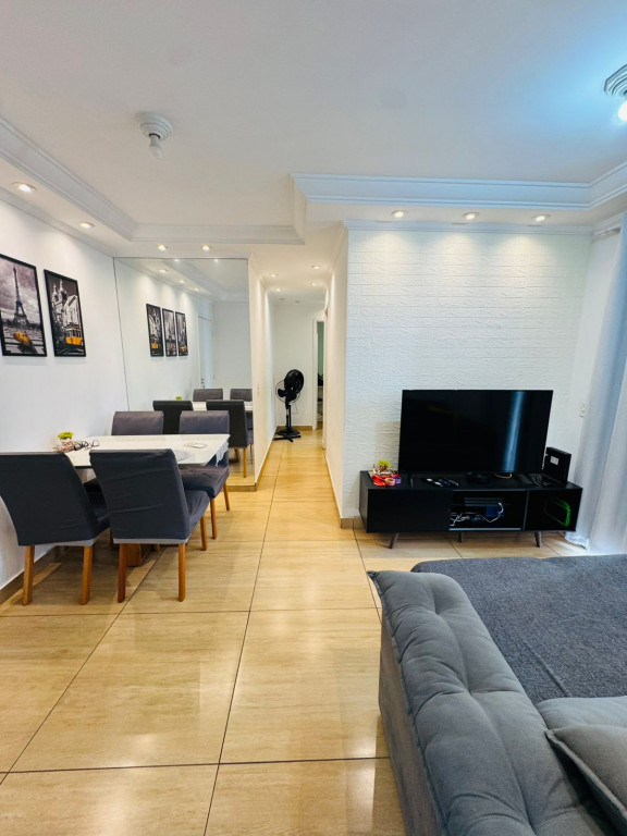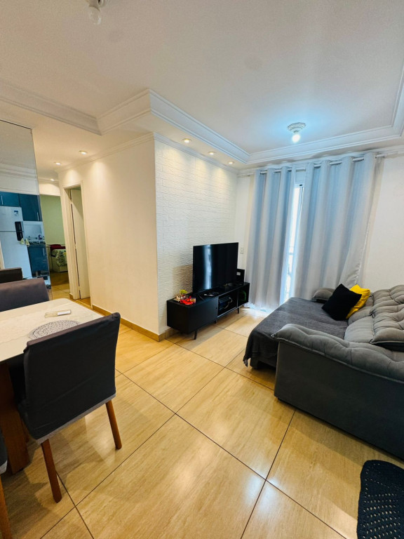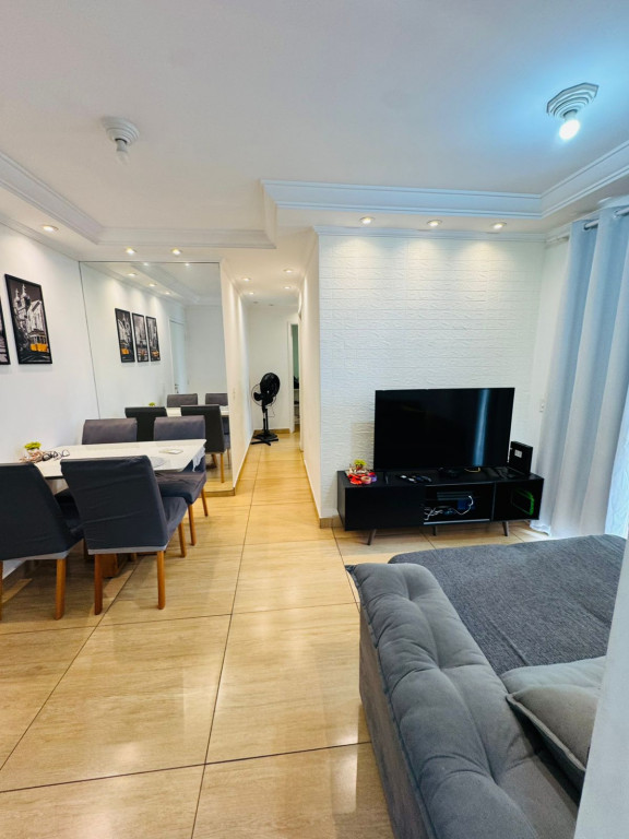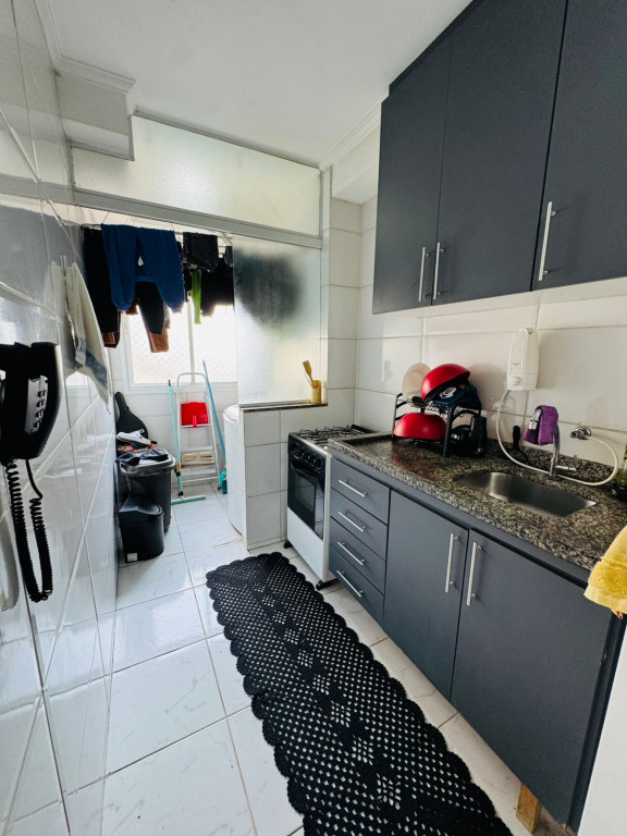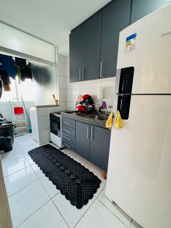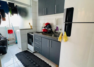 São 52 metros quadrados com 2 dormitórios, sala, cozinha, banheiro social, área de serviço e 1 vaga de garagem.
