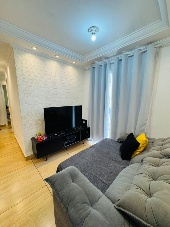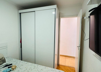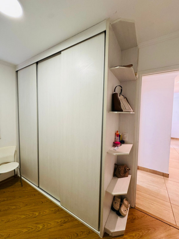 Apartamento com sacada, luminárias em led embutido, armários planejados, banheiro com box de vidro, aquecedor a gás sala e dormitórios com piso em porcelanato e banheiro com box de vidro.