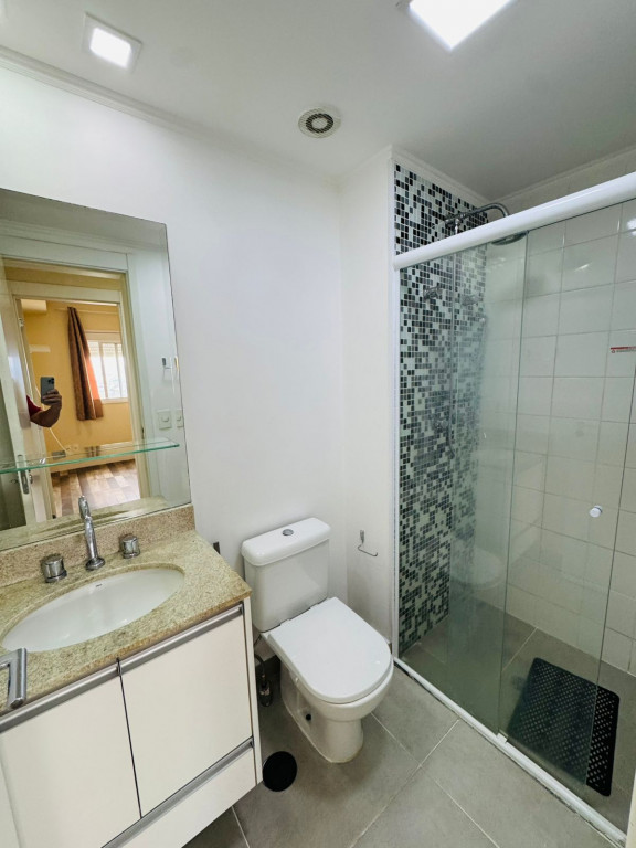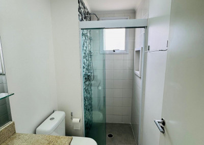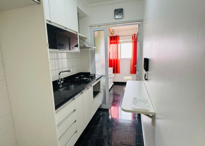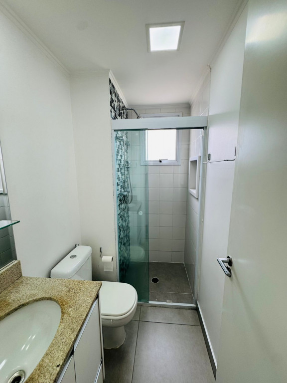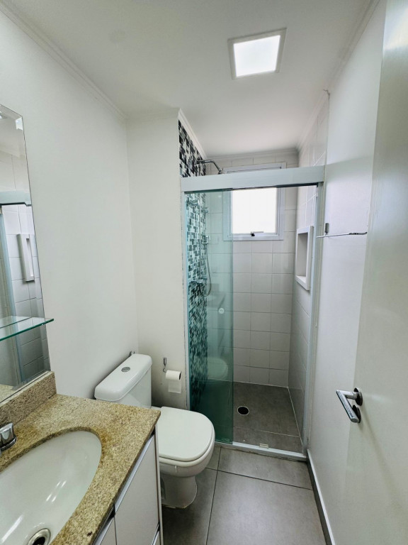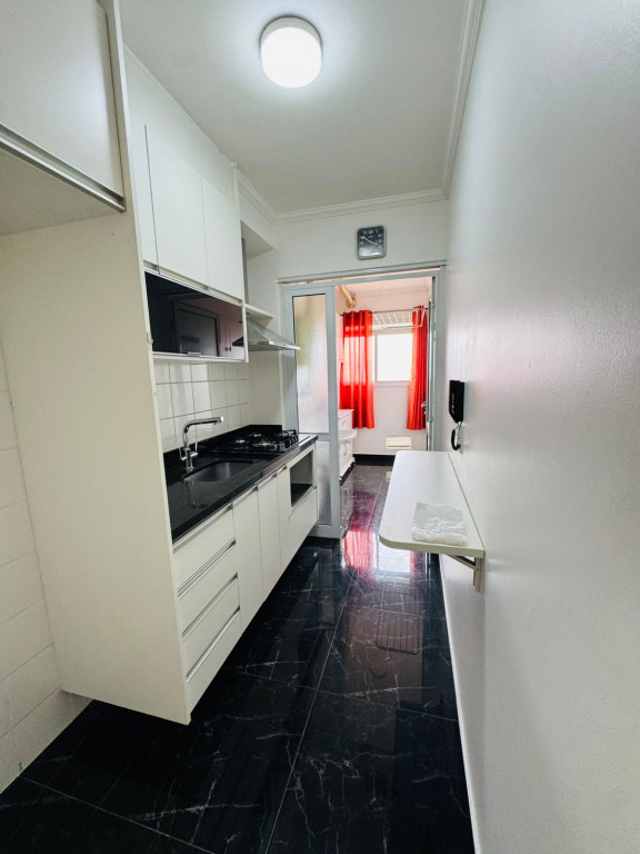 São 59 metros quadrados com, 2 quartos, sendo 1 suíte, sala ampla e bem iluminada, 2 banheiros com ótimo acabamento, cozinha funcional, área de serviço separada e 1 vaga de garagem