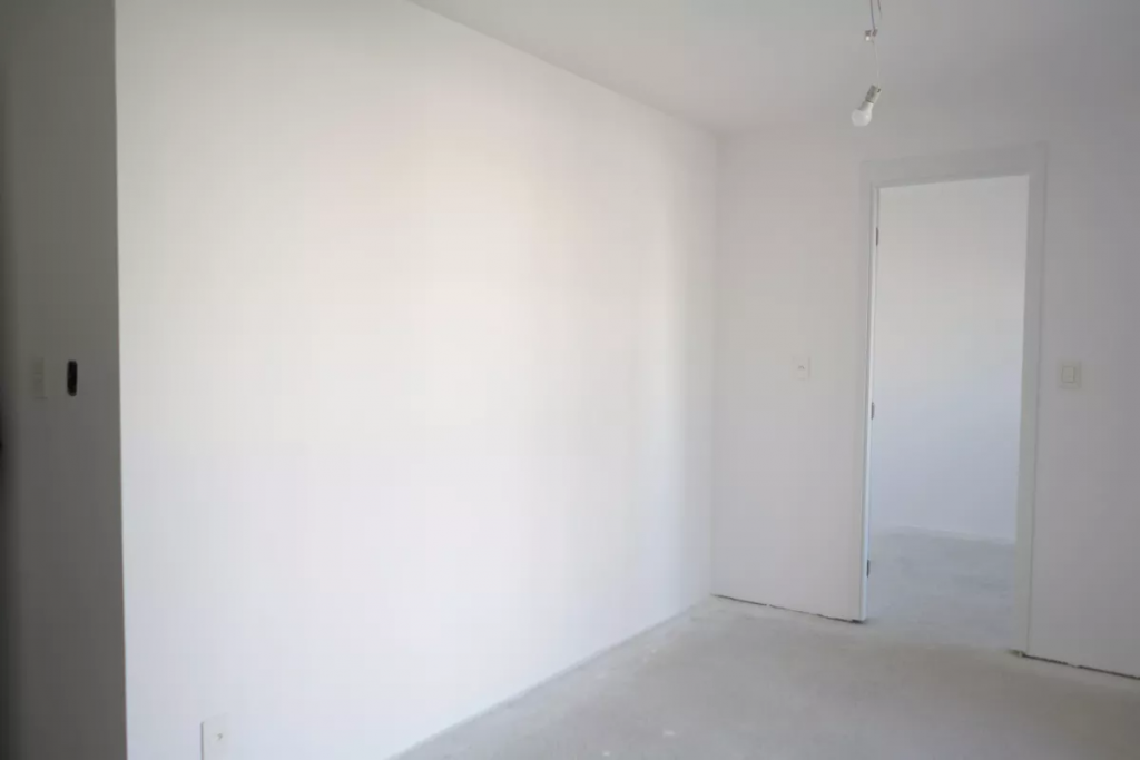 São 40 metros quadrados de área útil, com quarto, banheiro, sala integrada, sacada, cozinha, área de serviço, e 1 vaga de garagem, apartamento no sétimo andar, compacto, e funcional, repleto de planejados.