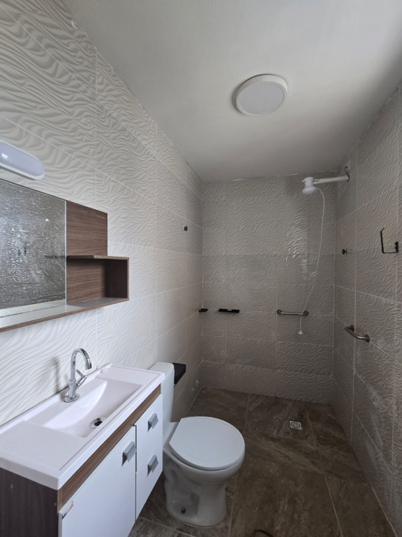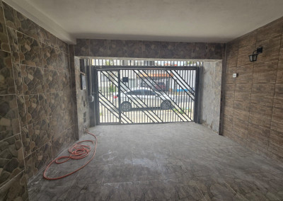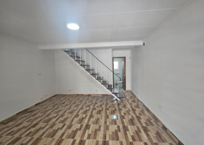 São 83 m² de terreno, com 120 m² área construída, sendo 4,60 m² de frente x 18 m² de comprimento, com 3 quartos, 3 banheiros, 2 suítes, sala, cozinha, área de serviço, quintal, e 1 vaga de garagem.