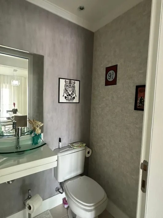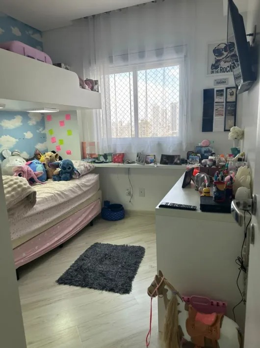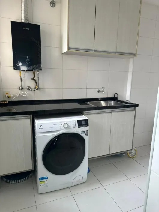 São 126m² com 3 quartos sendo 1 suíte, 2 banheiros, sala para 2 ambientes, cozinha, lavanderia, varanda e 2 vagas de garagem