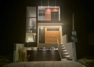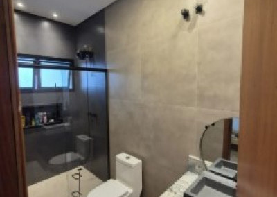 São 175 metros quadrados de terreno, com 264 metros quadrados de área construída, sendo 7 metros de frente por 25 de fundos, com 3 quartos sendo 2 Suítes, 4 banheiros, sala integrada, piso em porcelanato, box de vidro no banheiro, varanda, lavanderia, área gourmet, piscina, quintal, e 4 vagas de garagem.