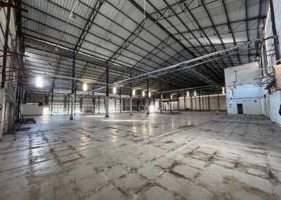 São 11.500,00 metros quadrados de terreno, com 6.200,00 de área construída, pátio de manobra 4.390,00 metros quadrados, área de escritórios 364,32 metros quadrados, cozinha industrial 227,36 metros quadrados, pé direito de 13 metros, portão de acesso de 6 metros, acesso para caminhões, baús e carretas, 3 docas.