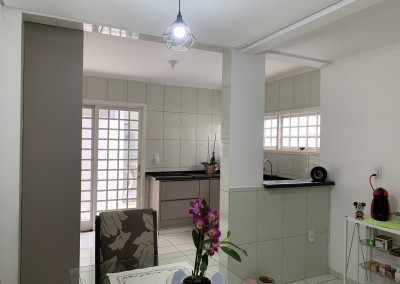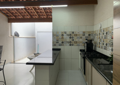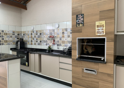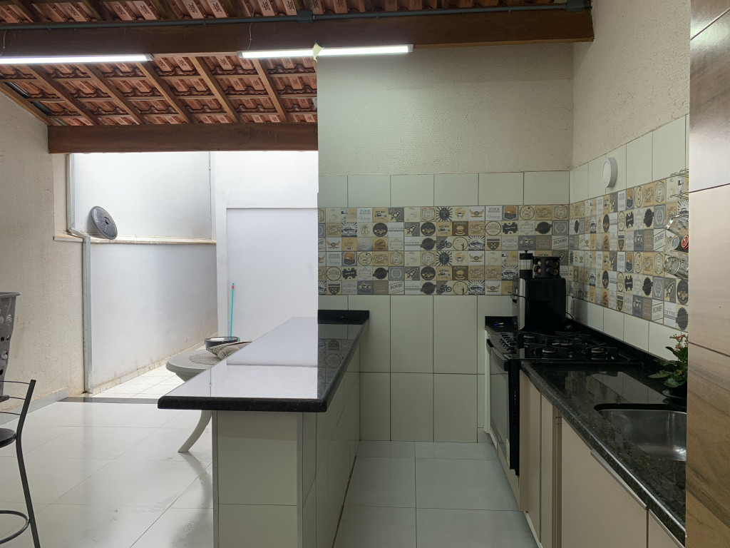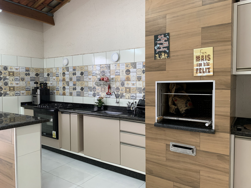 Casa com piso frio, cozinha estilo americana, armários, ótima iluminação natural, área de serviço coberta, espaço gourmet com churrasqueira, quintal com espaço Garden.