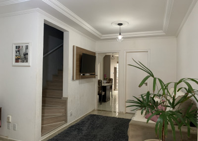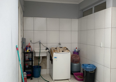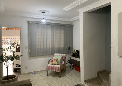 São 150 metros quadrados de terreno, com 230 metros quadrados de área construída, sendo 5 metros de frente por 30 de fundos, com 3 quartos, 3 banheiros, sala integrada, box de vidro no banheiro, lavanderia, quintal, e 2 vagas de garagem.