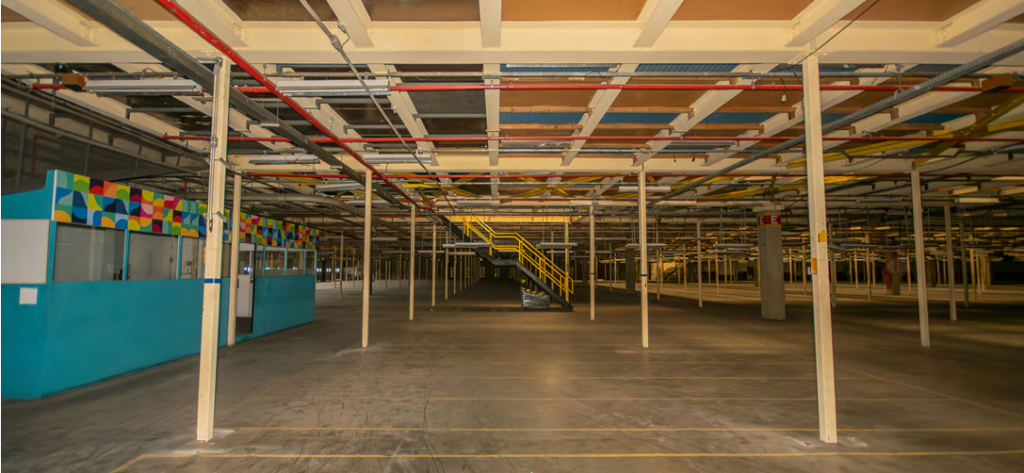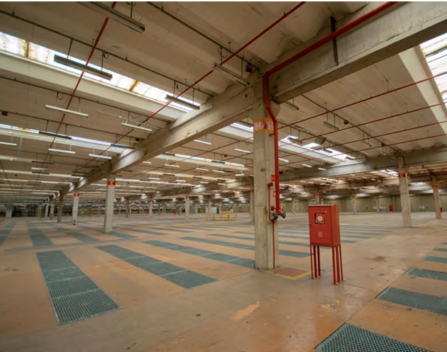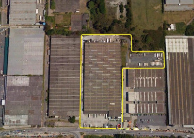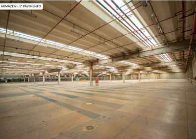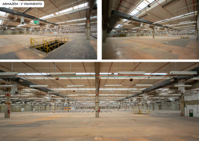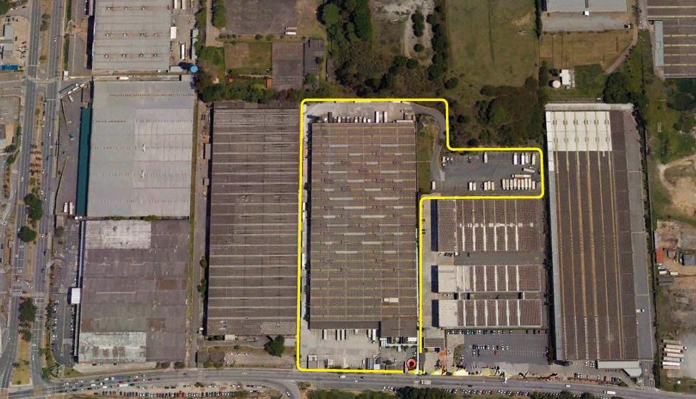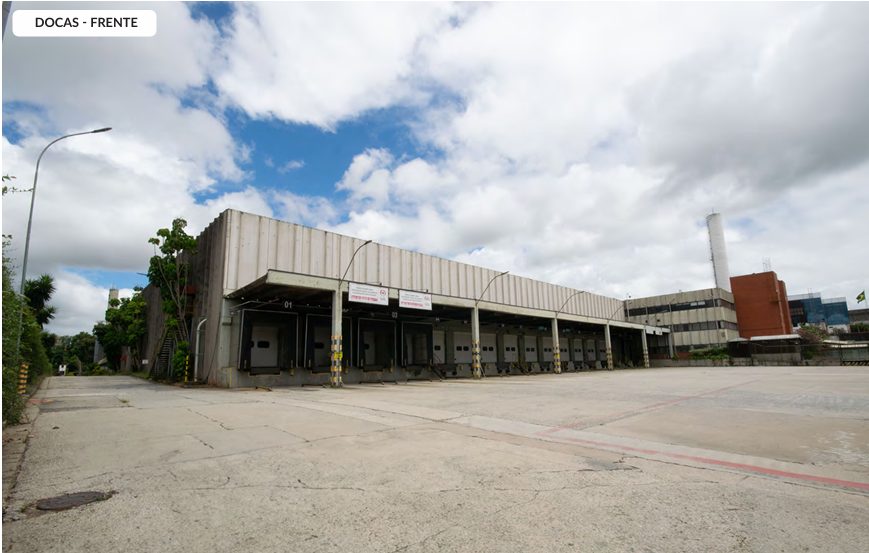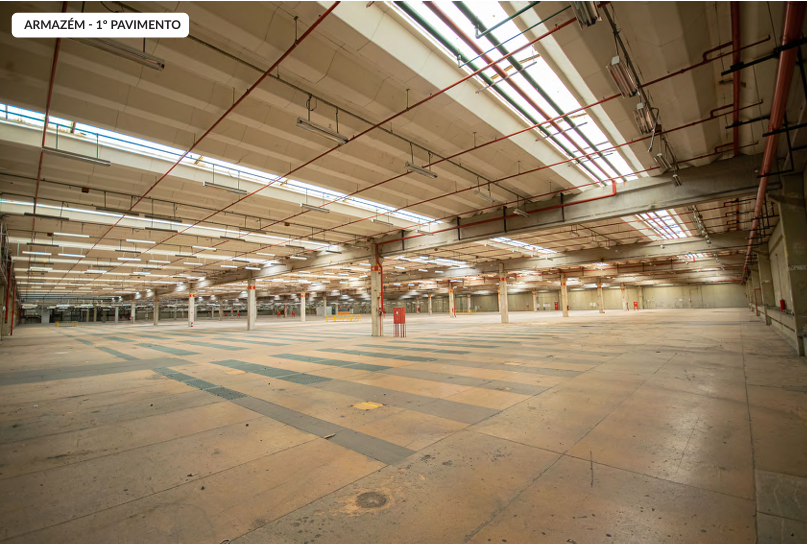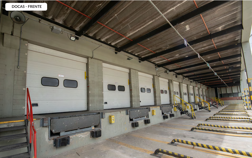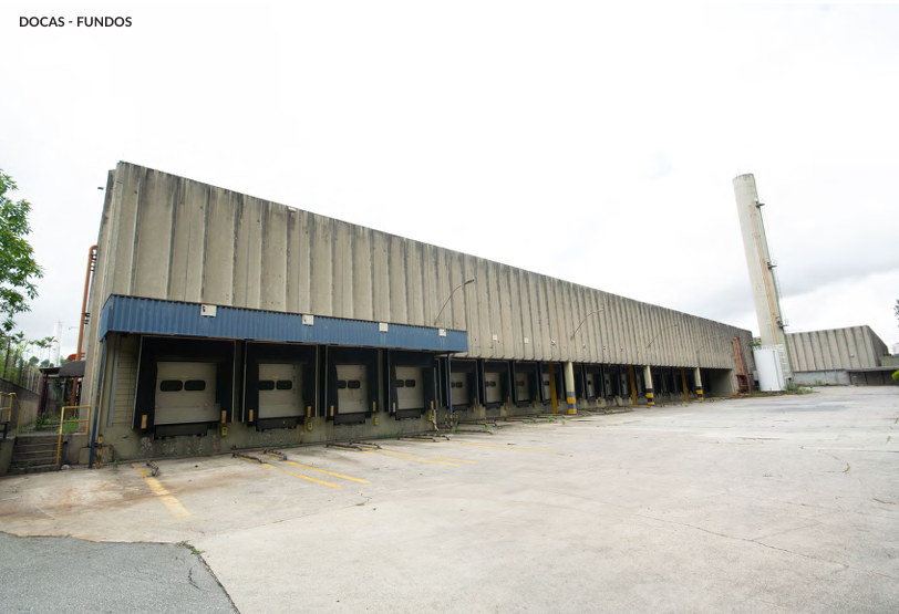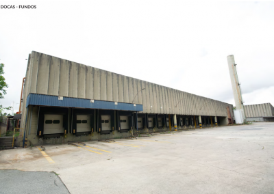 Galpão com 39.932,89 metros quadrados de terreno, com 41.408 metros quadrados de área construída, com 16 banheiros, 36 docas elevadas.