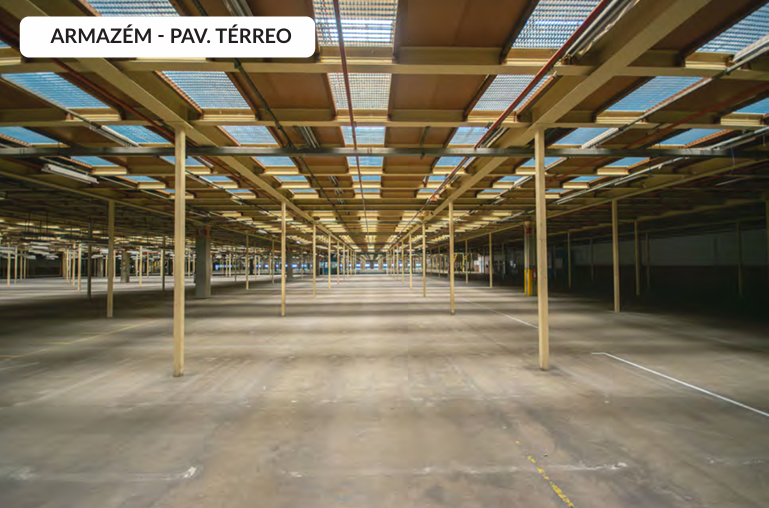 41.408,21 m² de área construída, 39.932,89 m² de área de terreno, Pé-direito térreo 12m, Pé-direito 1º pavimento 6m, Armazém c/ 1º e 2º pavimentos, 2 Portarias, Estacionamento, Prédio Administrativo composto de térreo + 2 pavimentos, Pisos elevados p/ escritórios, Elevador monta cargas capacidade 60kg, Elevador monta cargas capacidade 500kg, Capacidade de piso do mezanino = 300 kgf/m², Espaço para auditório, Pátio de Manobras, área de apoio para motoristas, 36 Docas - sendo 20 docas para expedição e 16 docas c/ Plataforma niveladora (sistema shelter), saídas de emergência, cozinha Industrial c/ 2 câmaras de refrigeração