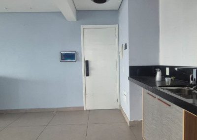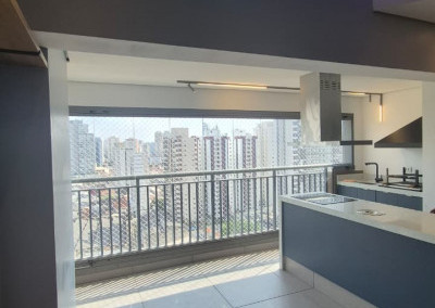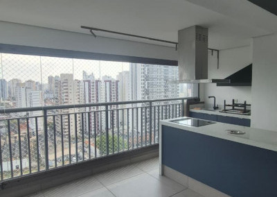 Apartamento com varanda gourmet fecha com vidro, fino acabamento e piso em porcelanato, luminária de led embutidas, fechadura eletrônica, pias em pedra. garagem com depósito.