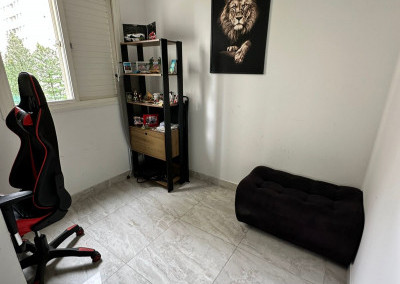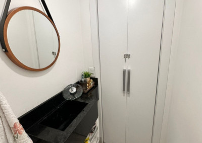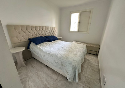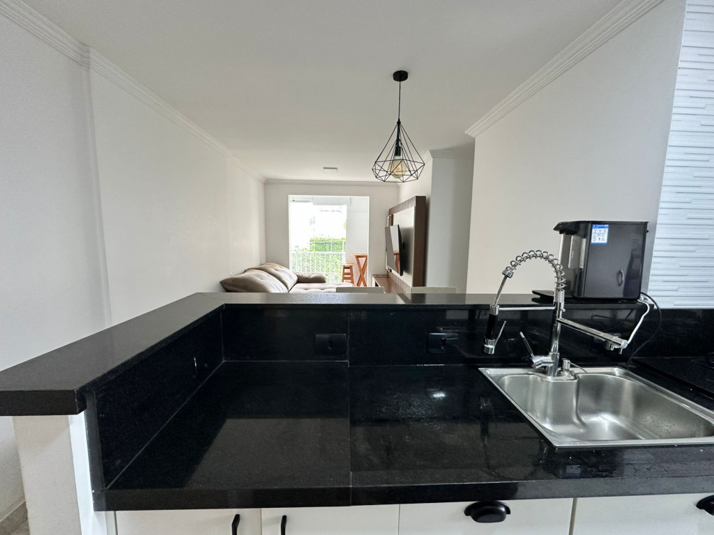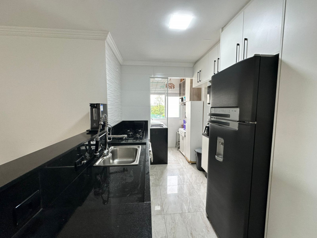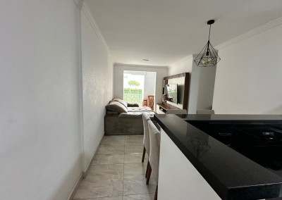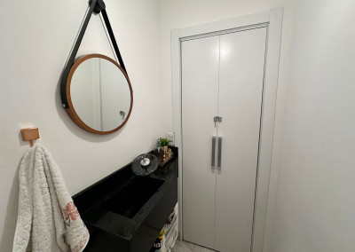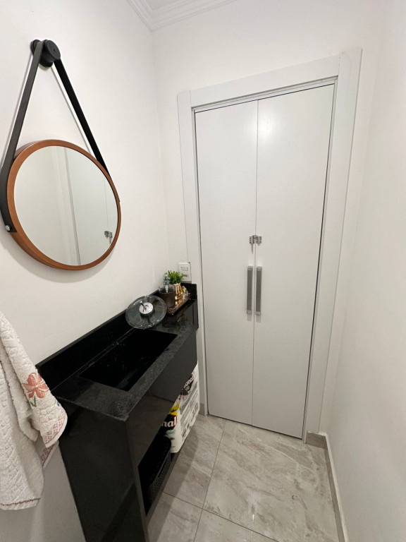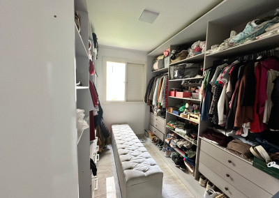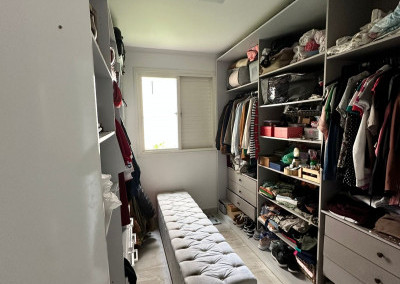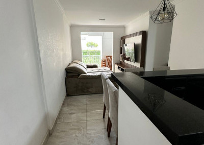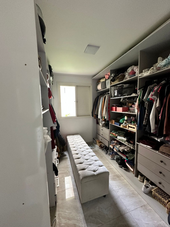 Apartamento com sacada envidraçada, cozinha estilo americano, com armários planejados, área de serviço com porta, lavabo, banheiros reformados com box de vidro, 1 dos dormitórios transformado em closet, piso em porcelanato e luminárias em led.