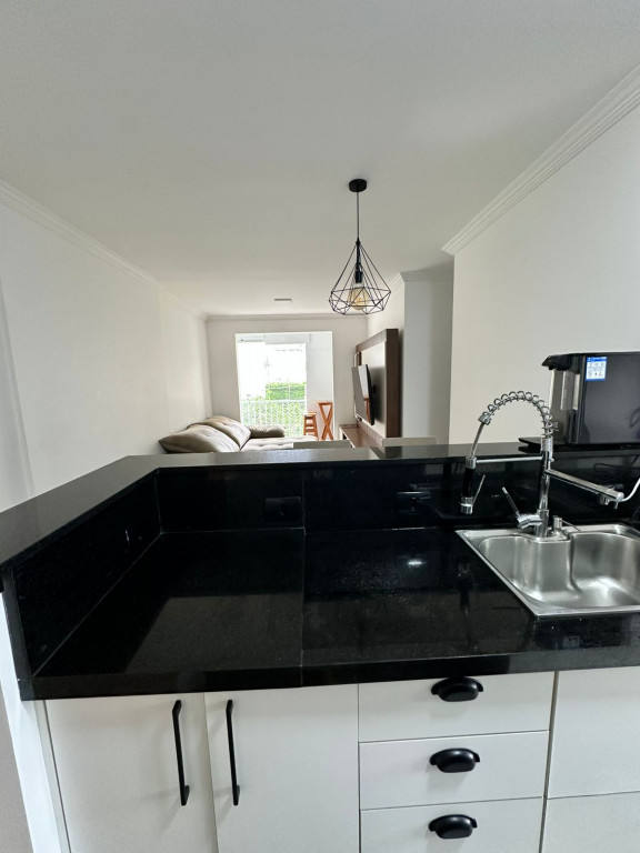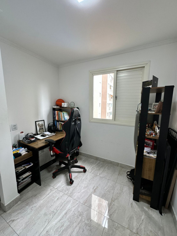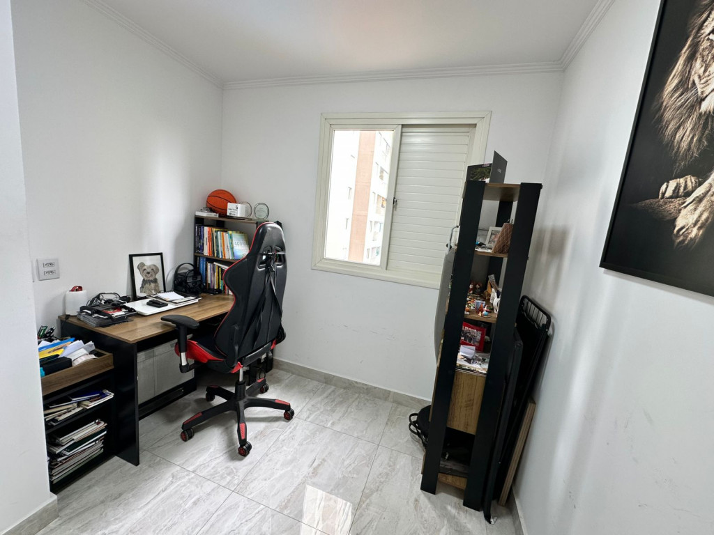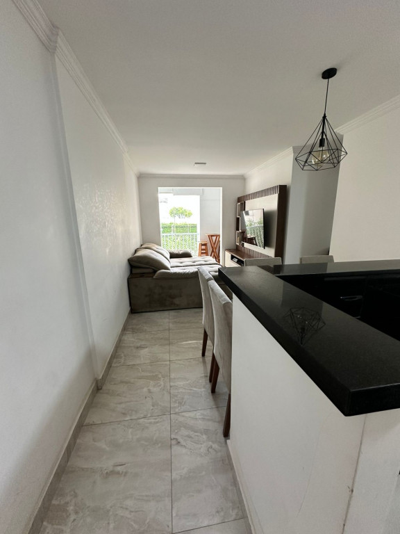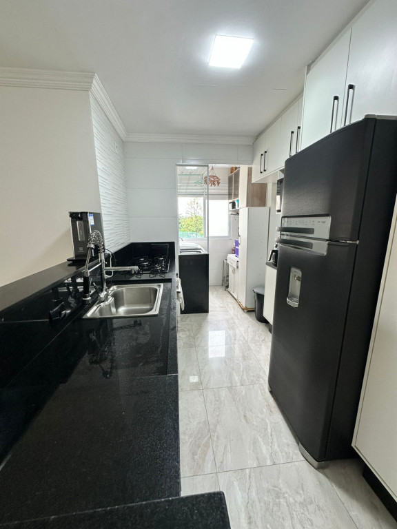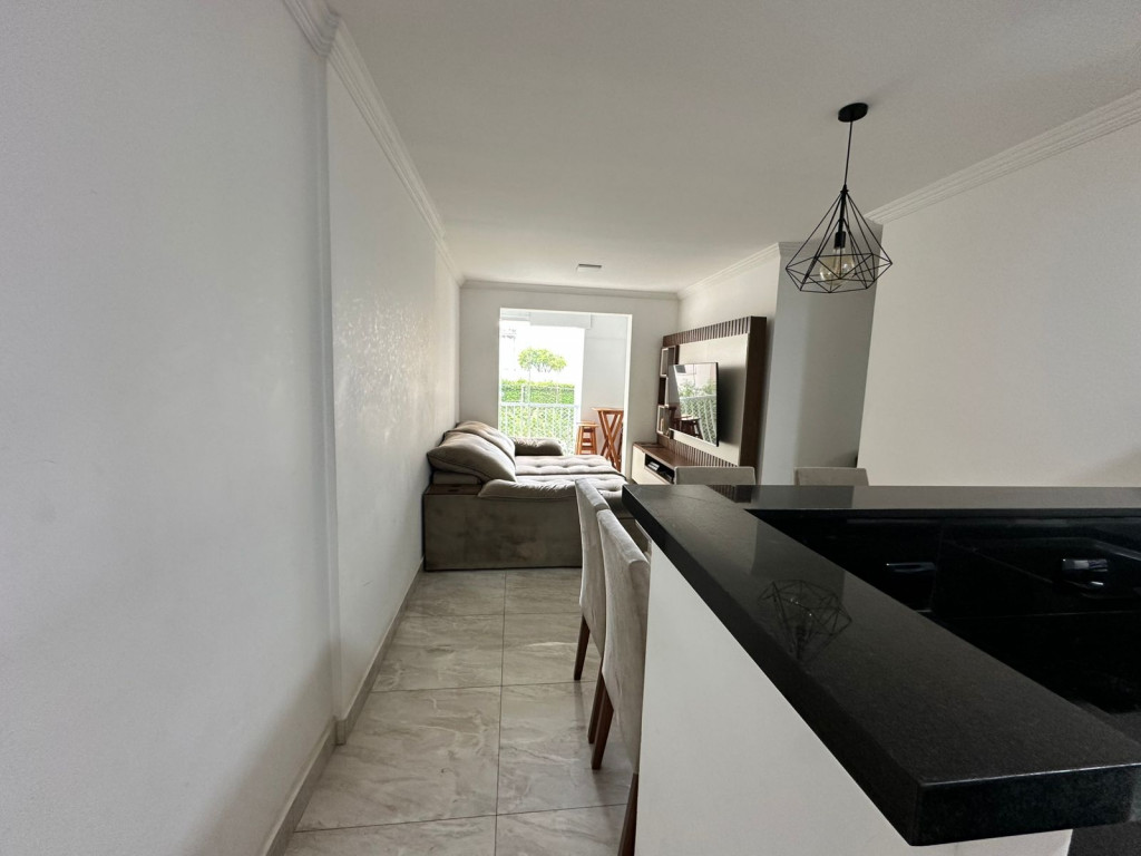 São 65m² com 3 quartos, sala com 2 ambientes e sacada, cozinha, 2 banheiros, área de serviço e 1 vaga de garagem.